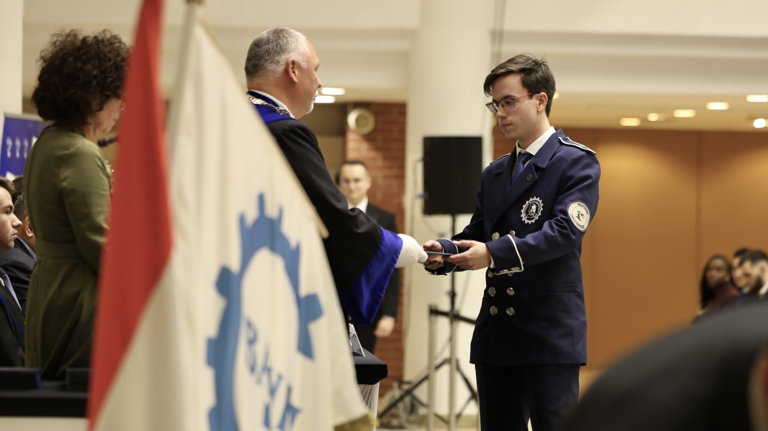 A fogadalomtételt követően Barta Andrea dékáni hivatalvezető búcsúztatására került sor, aki több, mint 10 éven keresztül látta el a hivatalvezetői feladatokat, és nemcsak szakmai tudásával, hanem emberségével, figyelmességével és támogató jelenlétével is gazdagította közösségünket. Számtalan sikeres Kari programot, gyermeknapokat, nyári egyetemeket, a Tésztahíd-építő Világbajnokság egyes állomásait köszönhettük kitartó munkájának. Részére Dékán úr emléktárgyat adományozott. A hallgatók nevében Rédei Regő, a Hallgatói Önkormányzat nevében is elbúcsúztatta Barta Andreát és emléktárgyat adományozott a részére, majd a végzett hallgatóinkhoz intézte ünnepi beszédét. Beszéde végén Sebestyén Ágota Lina végzett hallgatót invitálta a színpadra, akinek emléktárgyat adott át kiemelkedő közéleti szerepvállalásáért.