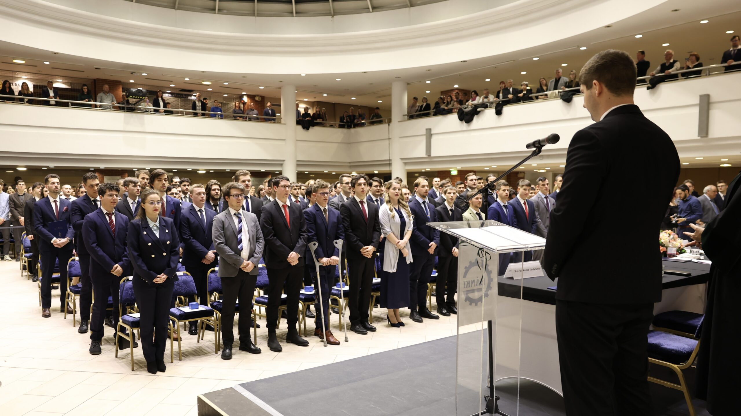 Ünnepségeink meghatározó pontja a mérnöki fogadalomtétel, amely során a tanulmányaikat sikerrel befejező hallgatóink nyilvánosan is hitet tesznek arról, hogy egész életpályájuk során a legjobb tudásuk szerint cselekednek, tisztességes szakmai helytállást és felelősséget tanúsítanak környezetük iránt. A fogadalomtétel előolvasására Bodrogai László Anzelm mechatronikai mérnököt kértük fel.