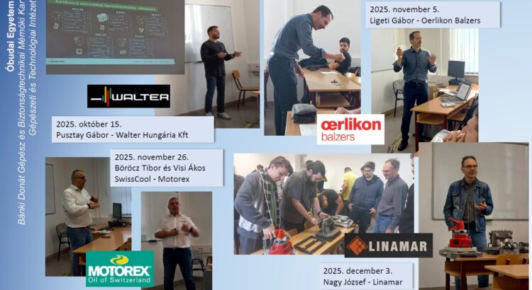 2025. október 15-én a Szerszámozási ismeretek tantárgy keretében Pusztay Gábor, a Walter Hungária Kft. munkatársa tartott előadást a gépészmérnök alapképzés CAD/CAM/CNC specializációján tanuló hallgatóknak. Előadásában bemutatta a cég legújabb fejlesztéseit a fúró- és marószerszámok területén, valamint ipari példákkal és esettanulmányokkal szemléltette a megfelelő szerszámválasztás jelentőségét. A műszaki tartalom mellett a technológiai tervezés gazdasági vonatkozásaira is felhívta a figyelmet.